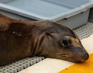 This patient is a California sea lion, our most commonly rescued species, with animals of all ages stranding throughout the year with a variety of ailments.