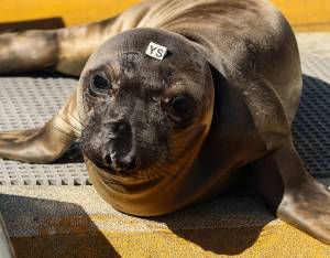 This patient is a northern elephant seal, our second most commonly rescued species. We typically see orphaned pups that have stranded during mid-February to late June. Strong storms often wash these young seals off beaches before they have weaned from their mothers or learned how to survive on their own.