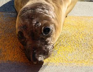 This patient is a northern elephant seal, our second most commonly rescued species. We typically see orphaned pups that have stranded during mid-February to late June. Strong storms often wash these young seals off beaches before they have weaned from their mothers or learned how to survive on their own.
