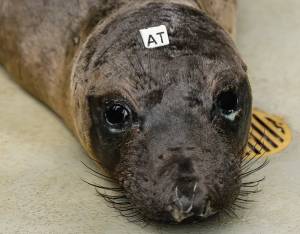 This patient is a northern elephant seal, our second most commonly rescued species. We typically see orphaned pups that have stranded during mid-February to late June. Strong storms often wash these young seals off beaches before they have weaned from their mothers or learned how to survive on their own.