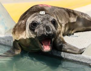 This patient is a northern elephant seal, our second most commonly rescued species. We typically see orphaned pups that have stranded during mid-February to late June. Strong storms often wash these young seals off beaches before they have weaned from their mothers or learned how to survive on their own.