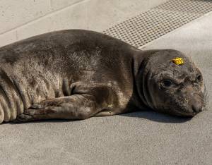 This patient is a northern elephant seal, our second most commonly rescued species. We typically see orphaned pups that have stranded during mid-February to late June. Strong storms often wash these young seals off beaches before they have weaned from their mothers or learned how to survive on their own.