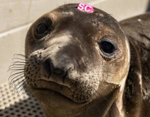 This patient is a northern elephant seal, our second most commonly rescued species. We typically see orphaned pups that have stranded during mid-February to late June. Strong storms often wash these young seals off beaches before they have weaned from their mothers or learned how to survive on their own.