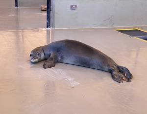 This patient is a Hawaiian monk seal, the most endangered marine mammal species in the United States. As a species endemic to Hawai´i, they can only be found in the Main Hawaiian Islands and the Northwestern Hawaiian Islands.