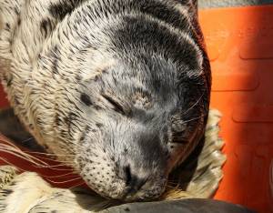 This patient is a Pacific harbor seal, our third most commonly rescued species. We typically see orphaned pups that have stranded during mid-February through late June. Pups are often separated from their mothers due to humans or dogs getting too close and scaring the mother away.