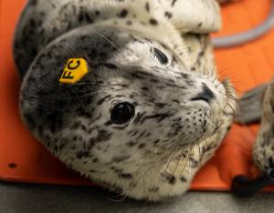 This patient is a Pacific harbor seal, our third most commonly rescued species. We typically see orphaned pups that have stranded during mid-February through late June. Pups are often separated from their mothers due to humans or dogs getting too close and scaring the mother away.