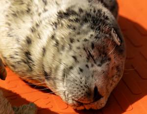 This patient is a Pacific harbor seal, our third most commonly rescued species. We typically see orphaned pups that have stranded during mid-February through late June. Pups are often separated from their mothers due to humans or dogs getting too close and scaring the mother away.