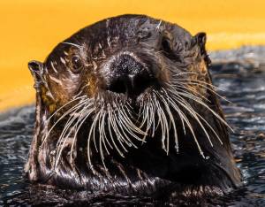 This patient is a southern sea otter, a threatened species. Because sea otters are very dexterous and curious, we retrofitted several pool areas at our hospital to provide a safe space for juvenile and adult sea otters to receive life-saving care.