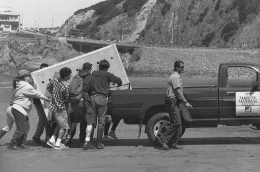 In 1975, Lloyd Smalley, Paul Maxwell, and Pat Arrigoni establish the California Marine Mammal Center on the site of a former Nike missile site in the Marin Headlands. Permits are acquired, money is raised, and the site is prepared for transformation into a rescue hospital. A sea lion named Herman, with roundworms and tapeworms, is the first patient to be treated and released.