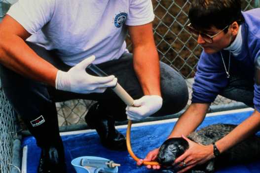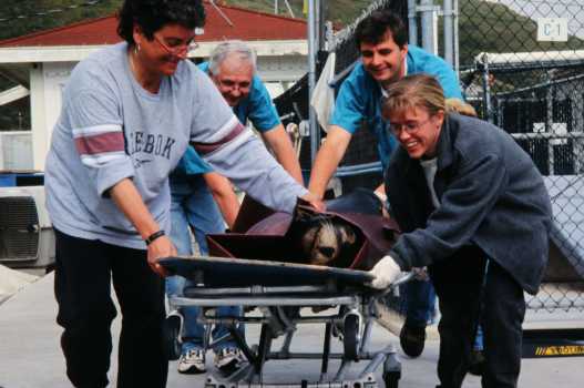 The climate phenomenon known as El Niño causes a disruption in the food supplies of marine mammals along the California coast. This results in a large number of marine mammals, especially sea lions, suffering from malnutrition and stranding. In one day the Center cares for a record 210 patients.